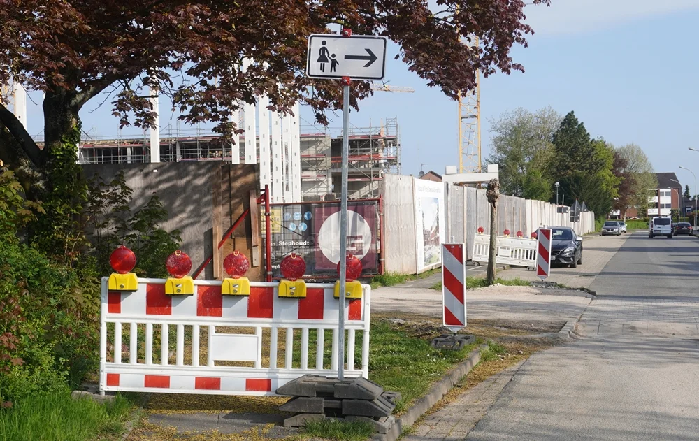 Jetzt ist die Ausfahrt der Baustelle abgesperrt und beschildert.