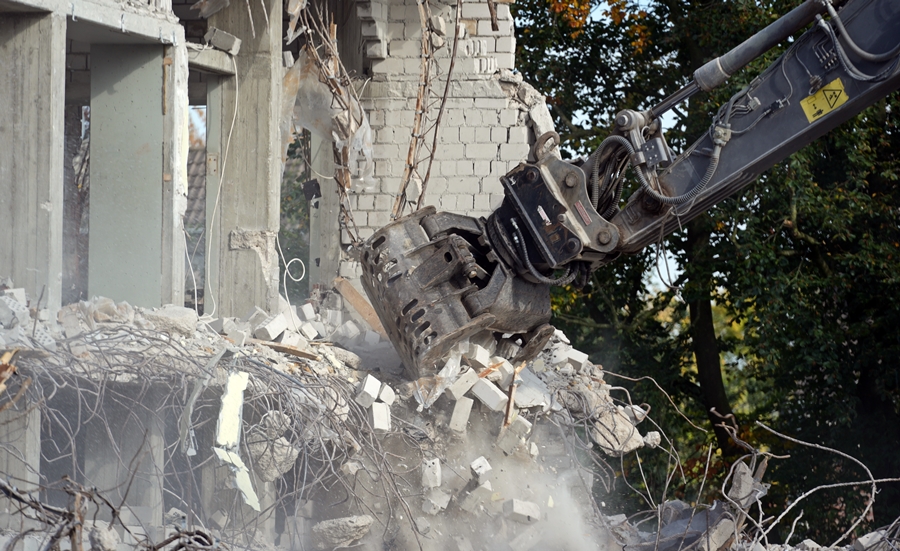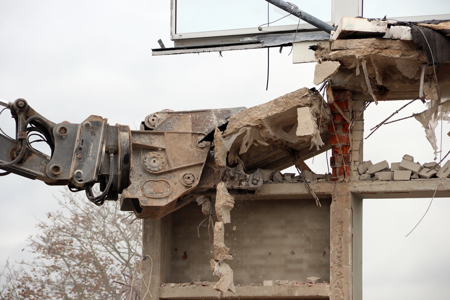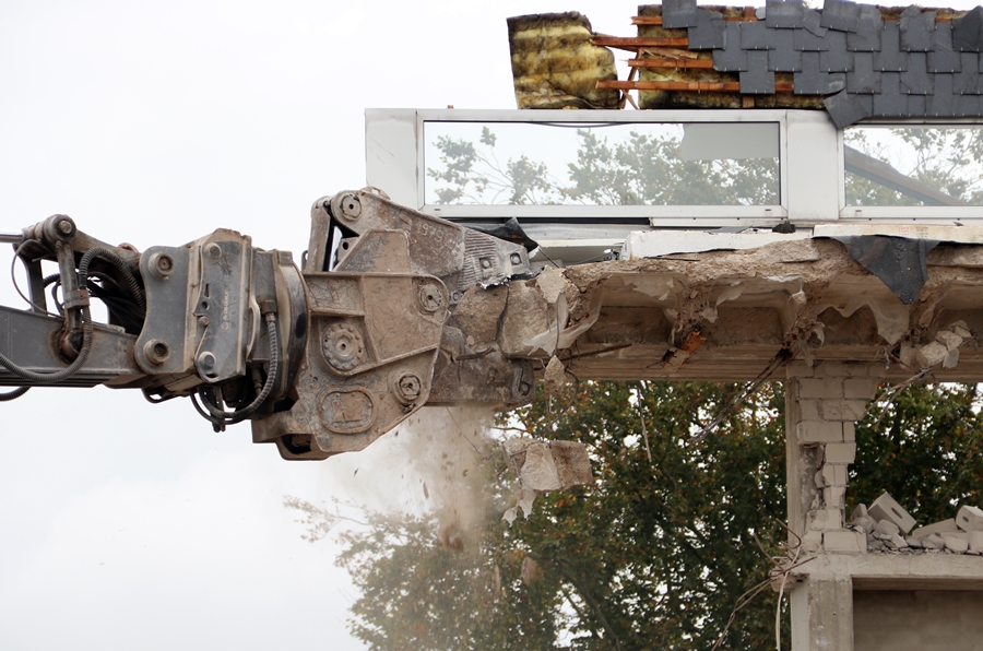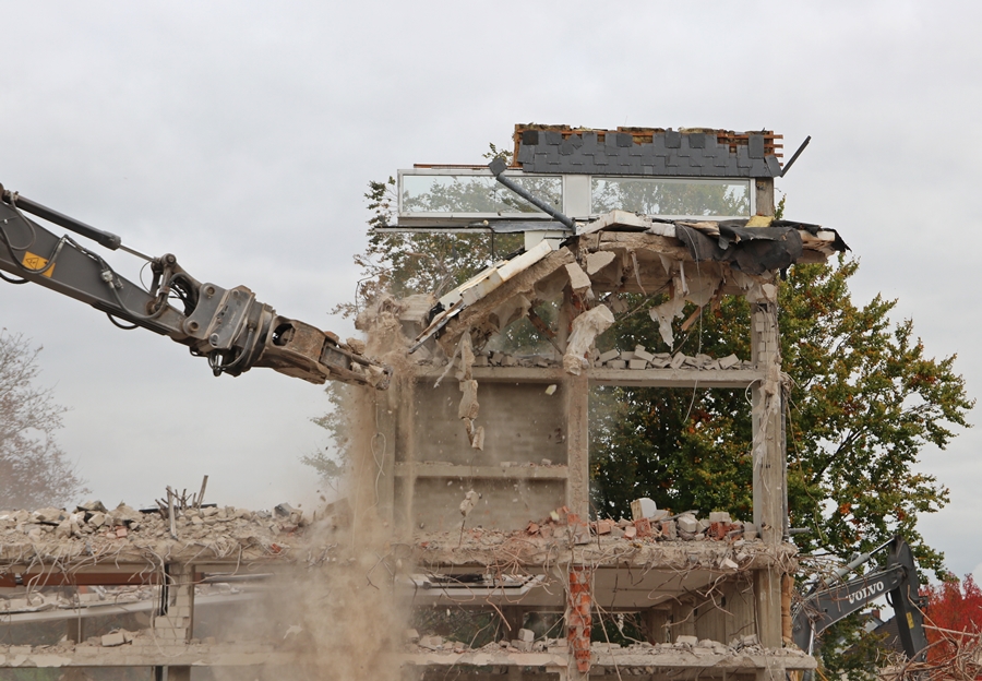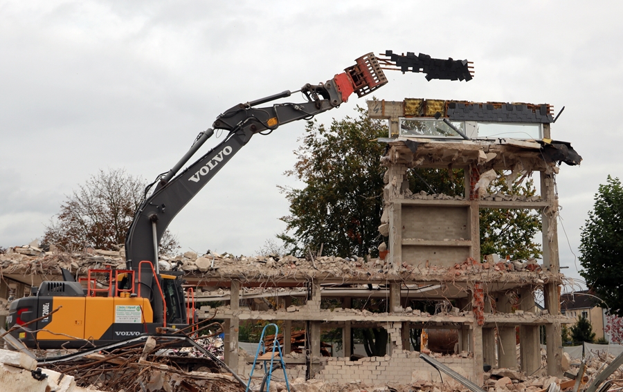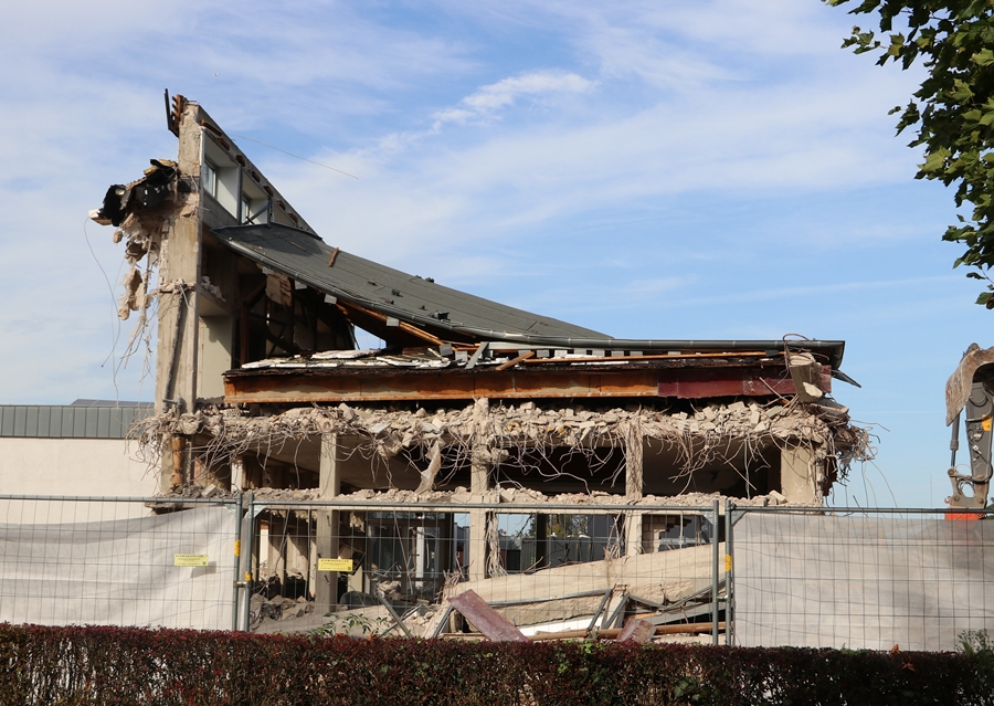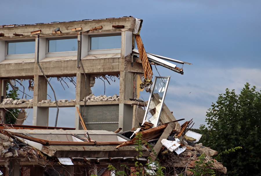 Jetzt ist der obere Teil des Gebäudes auch weg.