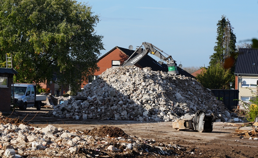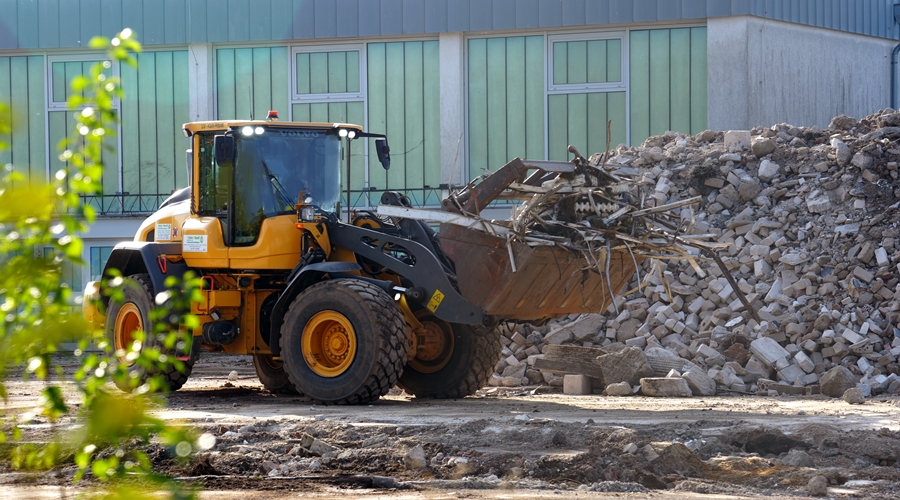 Bauschutt wird zusammengeschoben.